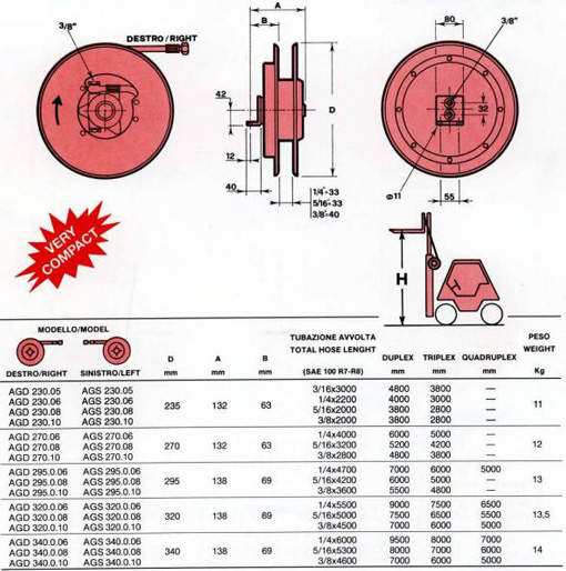 Możliwe sa kombinacje z przewodem do sprężonego powietrza albo z kablem elektrycznym, jak również kombinacja z 3, 4 - stopniowymi nawijarkami do przewodów.